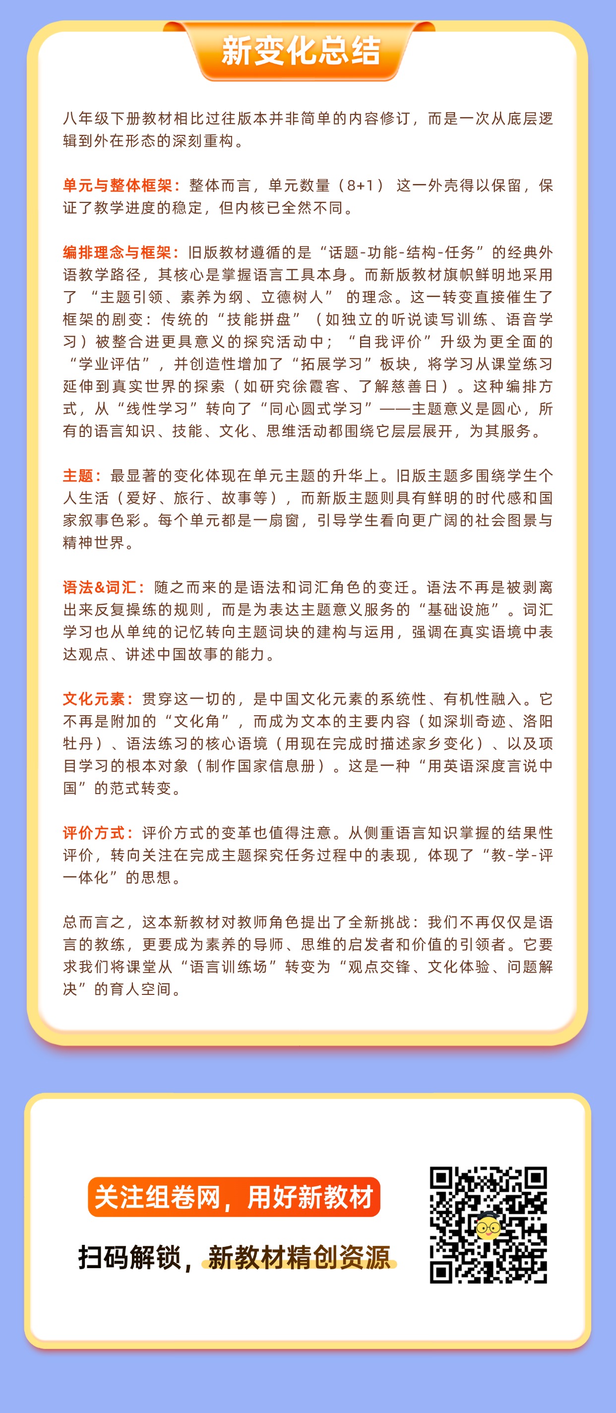 图解新教材 | 初中英语(八年级下册),新旧教材对比与核心变化点睛!